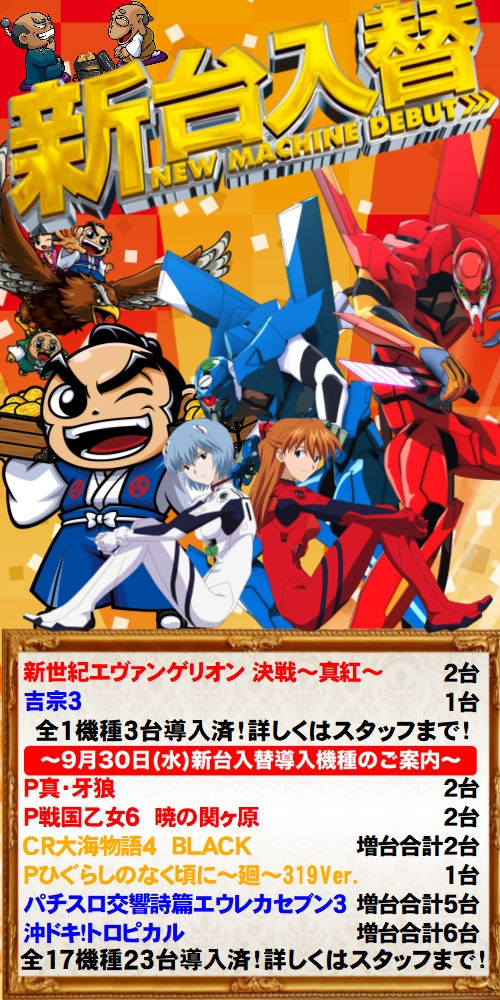 此花島屋店 明日14日新台入替 今夜0時にブログ更新