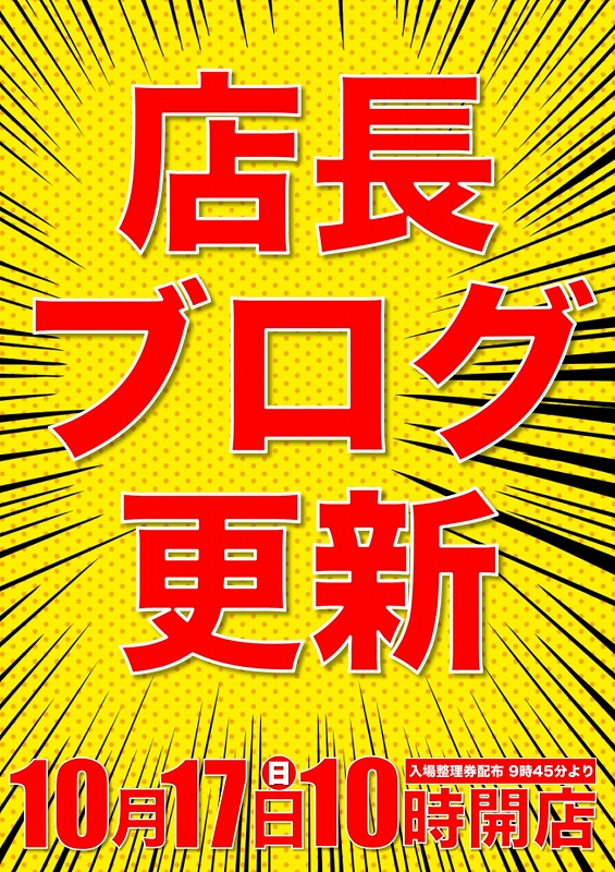 9月7日(火)10時開店!!明朝店長ブログ更新!!