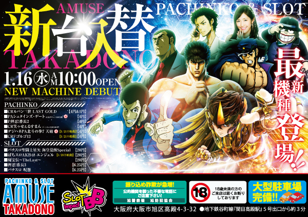 明日【新台入替初日】アミューズ高殿×BBインパクト!