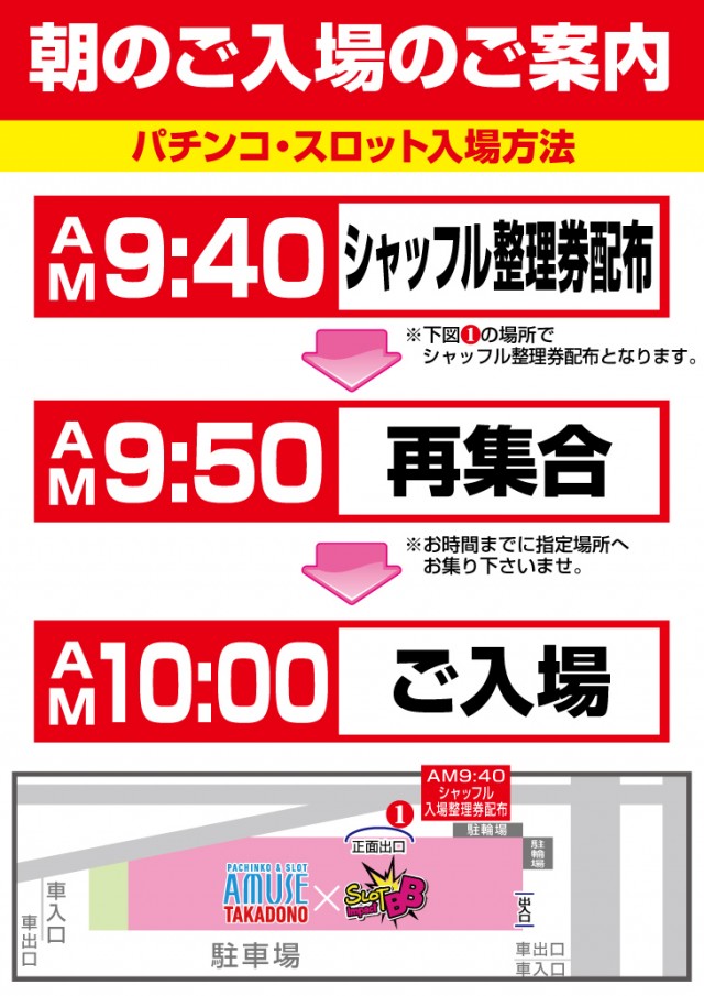 9:40までに正面玄関に並んでいただいたお客様よりシャッフルして整理券の配布 |