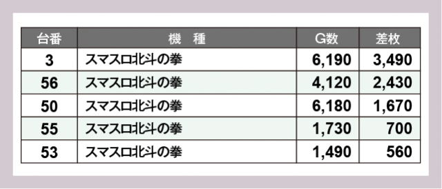 ※差枚数順に掲載しています