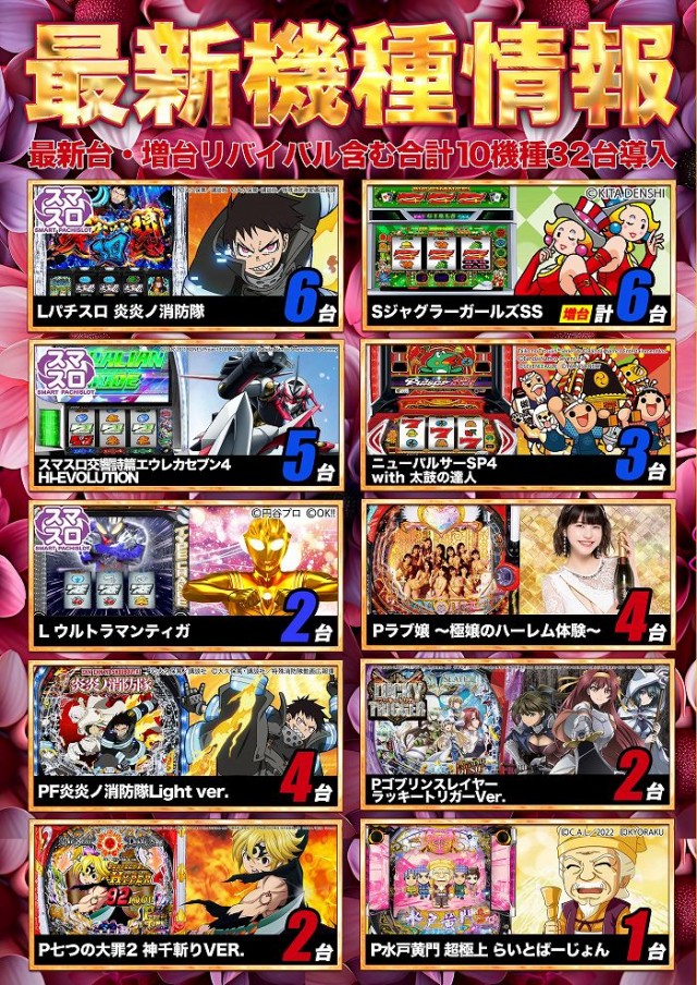 L 炎炎ノ消防隊jG 6台Lエウレカセブン4 HIEVO KX 5台SジャグラーガールズSS 3台増台計6台