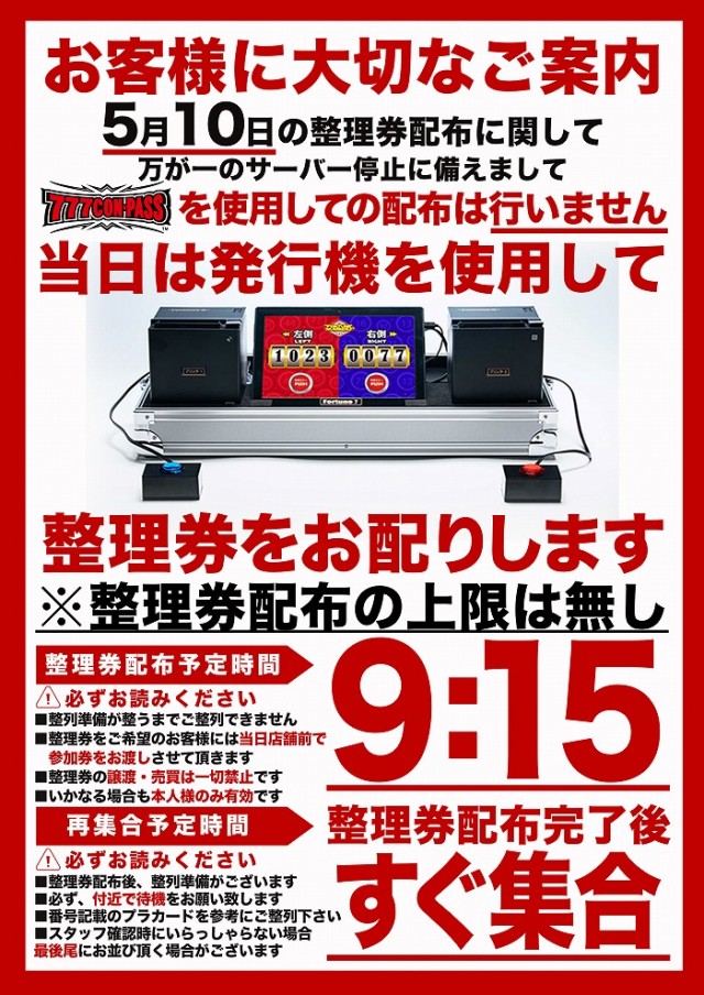 5月10日は大変込み合う可能性が高いのでお早目にご来店くださいませ! -