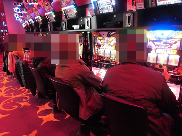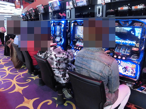 5円パチスロでも、多くの人が笑顔を浮かべて遊技を楽しんでいた。