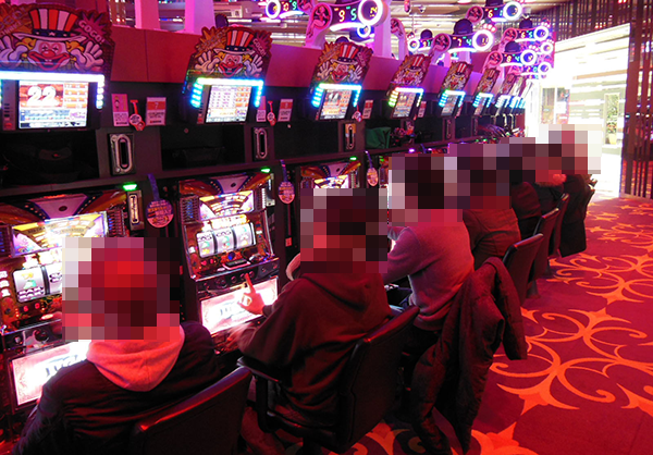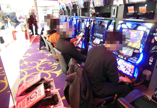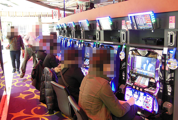 20円パチスロの「バジリスク~甲賀忍法帖~絆」やジャグラーシリーズ、4円パチンコの「CRぱちんこ GANTZ」など、さまざまな機種が朝から高稼働となっていた。