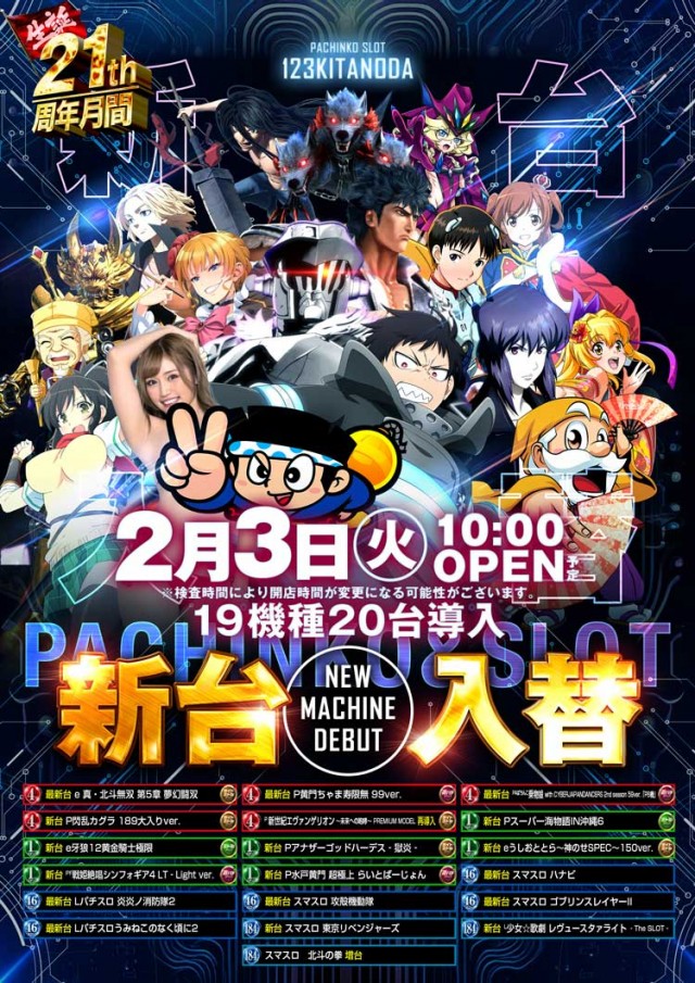 2月3日(火)新台入替完了19機種20台一挙導入_!