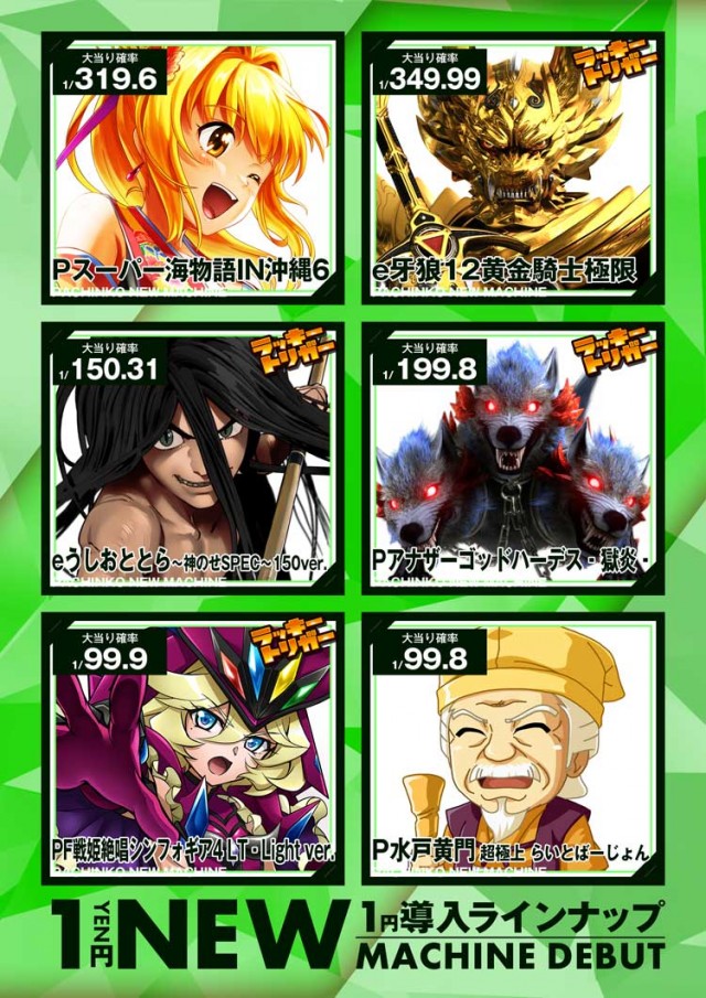 1月20日(火)新台入替 14機種16台導入!10時開店!