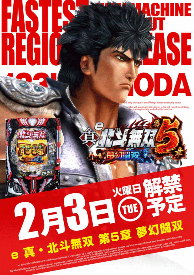 1月6日(火)新台入替!全館10時開幕!北斗の拳転生2導入!