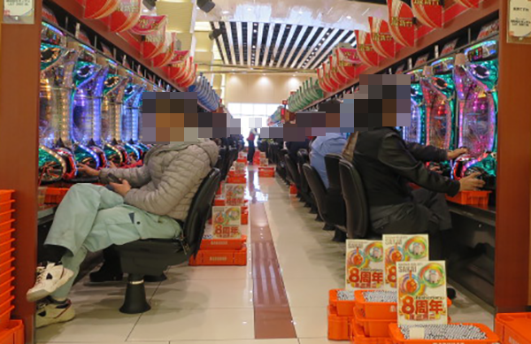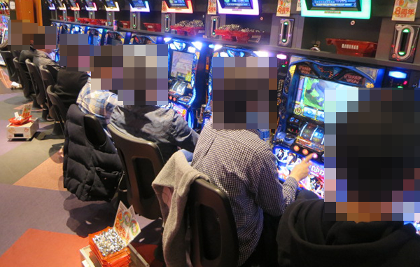 午後の4円パチンコでは、新台の「ぱちんこCR真・北斗無双」がほぼ満席。空き台を探すプレイヤーもいるほどの盛況ぶりとなっており、たくさんの笑顔に満ちた素敵なシマとなっていた。