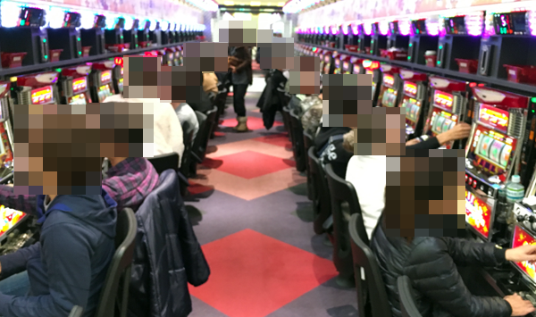 ジャグラーシリーズや「ハナビ」などのボーナスタイプも好評となっており、楽しそうに遊技するプレイヤーが多数。