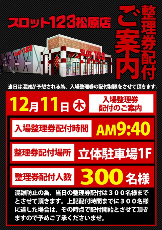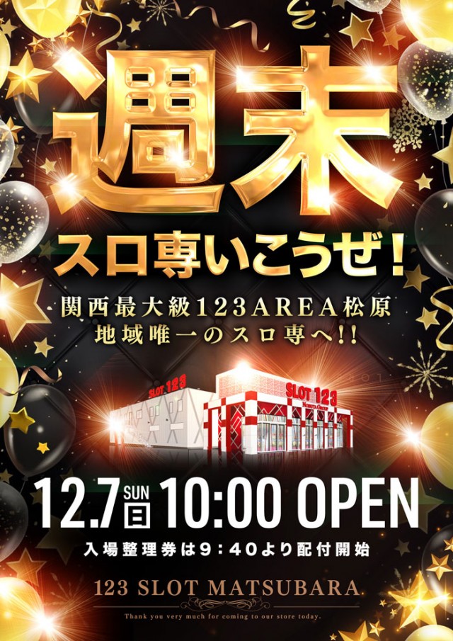 12/3(水)★123エリア松原★スロットエンターテイメント