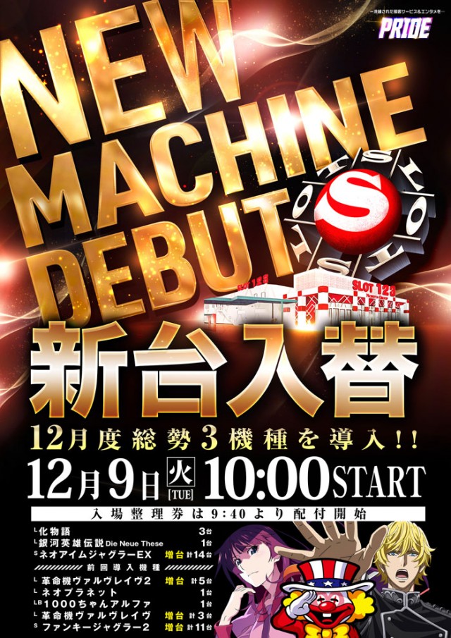 12/9(火)10時開幕!123エリア松原★スロ専の新台入替