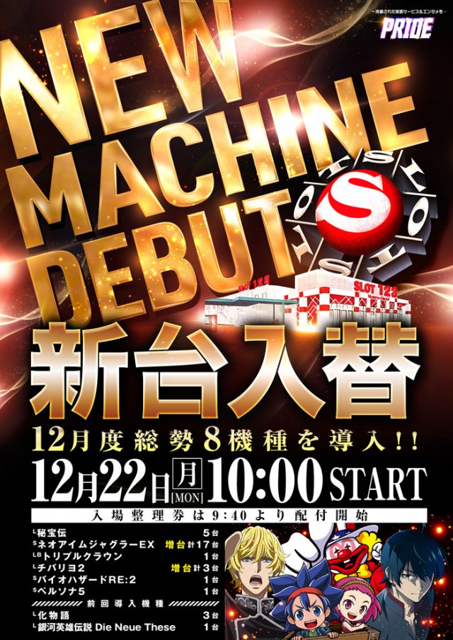22(月)10時開幕!★123エリア松原★スロ専の新台入替★