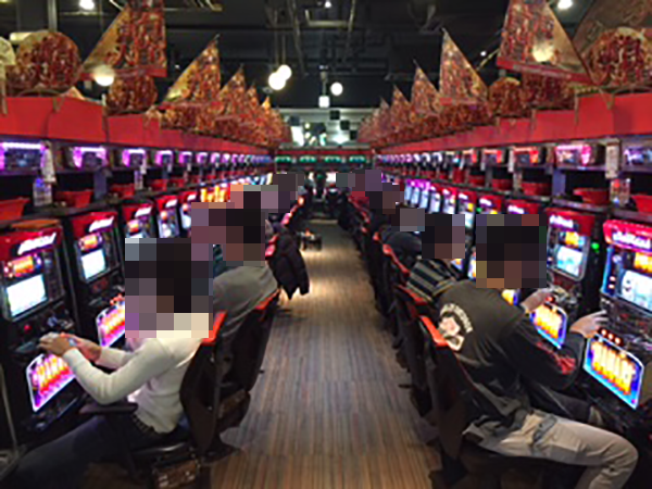 取材中はつねに大きなにぎわいに包まれており、随所に活気を感じられた「スロットスタジオ松原店」。
