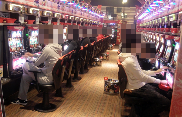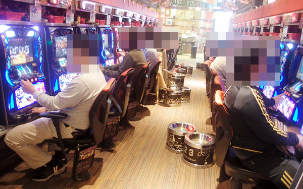 午後以降の様子をみてみると、各機種のなかで目立っていたのは「アナザーゴッドハーデス」と「バジリスク〜甲賀忍法帖〜絆」。どちらの機種も素晴らしい盛り上がりをみせており、遊技しているプレイヤーの多くが充実した笑顔を浮かべていた。