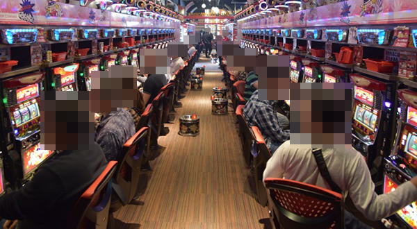 ジャグラーシリーズをはじめ、ボーナスタイプにも空き台は少ない。心から楽しめているプレイヤーが多いからこそ、ここまで大きくにぎわっている光景がみられるのだろう。