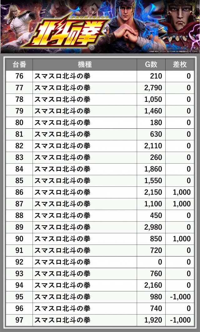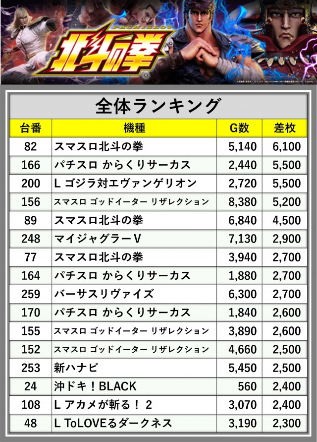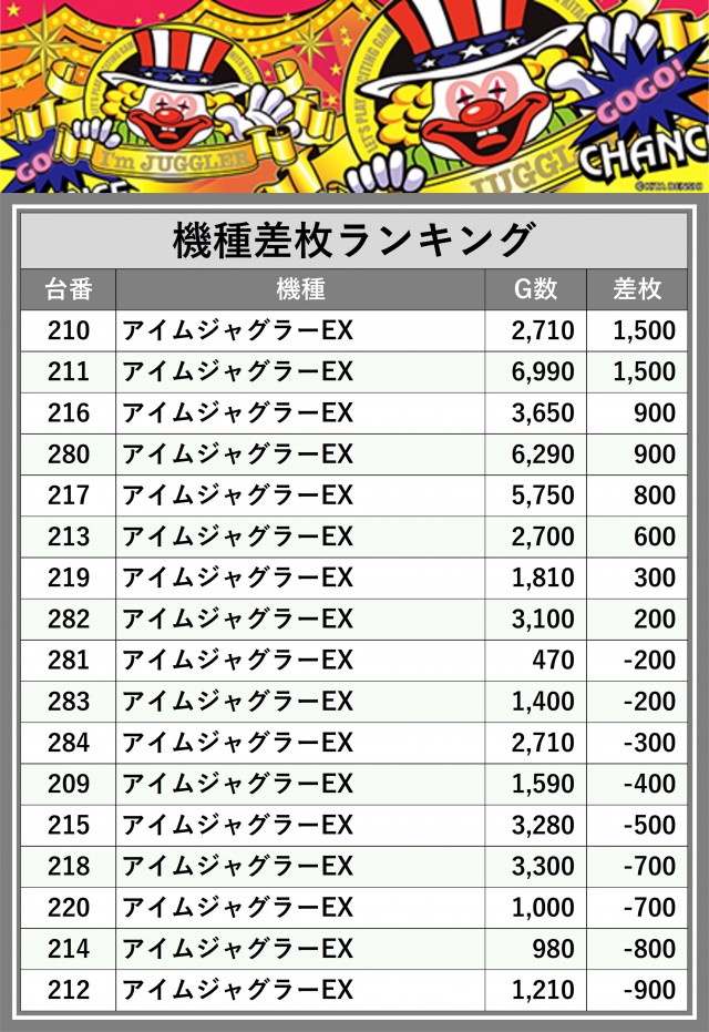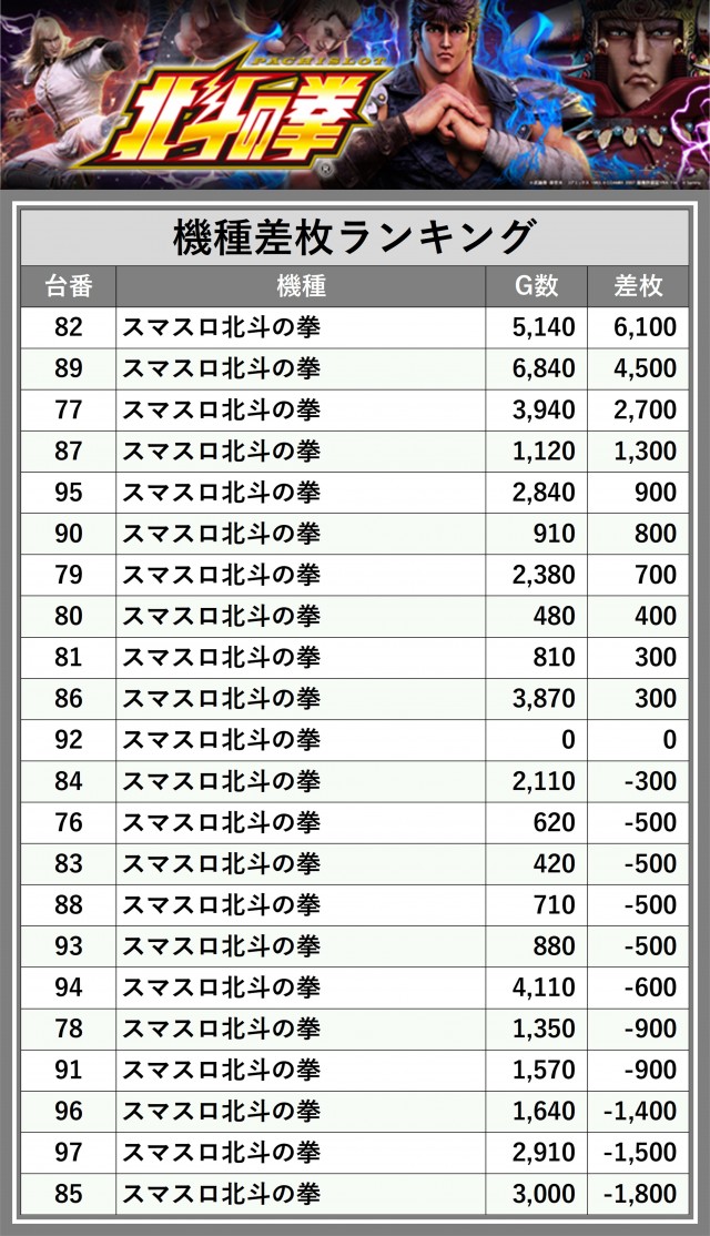 ※差枚数順に掲載しています