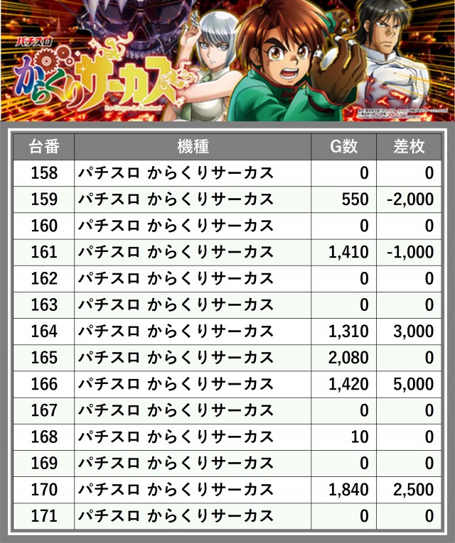 ※台番順に掲載しています