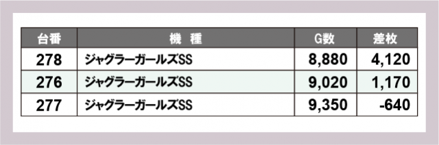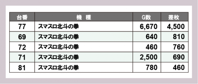 ※差枚数順に掲載しています