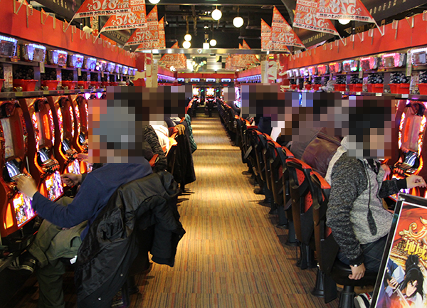 開店して間もなく、「バジリスク~甲賀忍法帖~絆」と「秘宝伝~伝説への道~」がほぼ満席の状態となっていた。プレイヤーたちは嬉しそうに遊技をはじめており、期待度の高さがダイレクトに伝わってきた。
