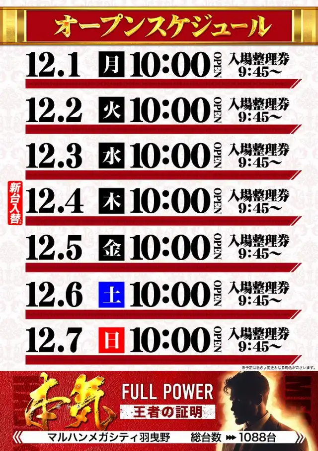 11/1(土)新台入替完了 11月新展開~衝撃~王者の証明