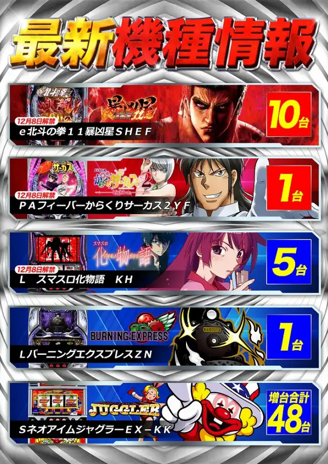 11/4(火)新台解禁 10時開店 ヴヴヴ2他8機種30台!