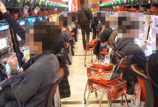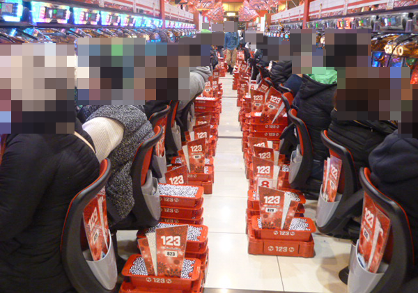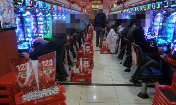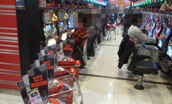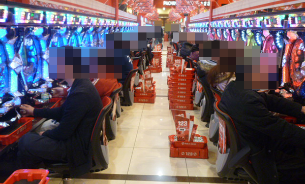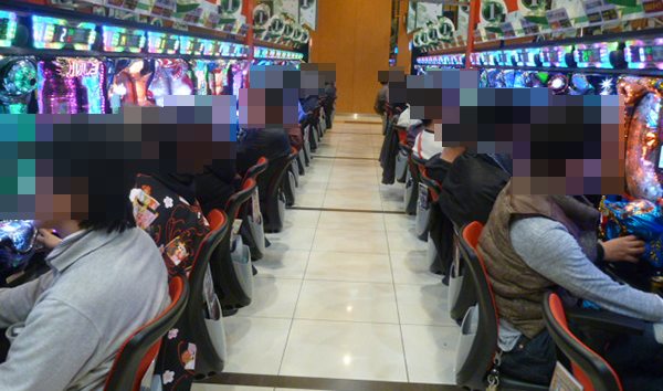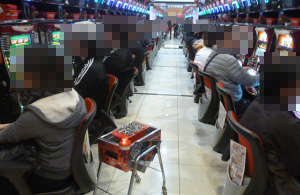 各台に計数カウンターが付いている1円パチンコも、ほぼ満席といった状況。