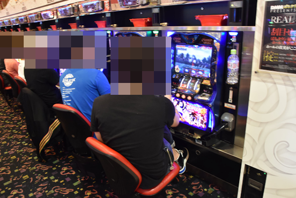 午後の20円パチスロでも、「バジリスク~甲賀忍法帖~絆」が盛況。機種の魅力を存分に堪能していると思われるプレイヤーがおり、満足度の高さもうかがえた。