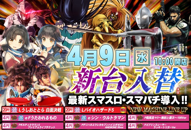 明日4月9日(水)新台入替! 朝10時開店!