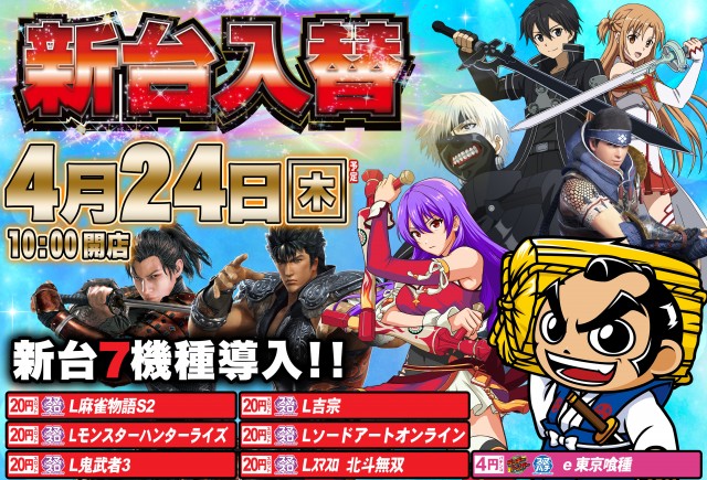 明日4月24日(木)新台入替! 朝10時開店!