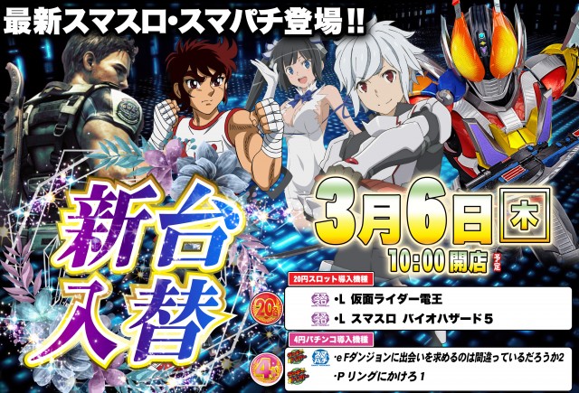 明日3月6日(木)新台入替! 朝10時開店!