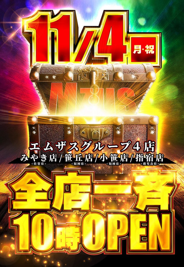 💥11月4日(月・祝) エムザス全店10時OPEN!💥