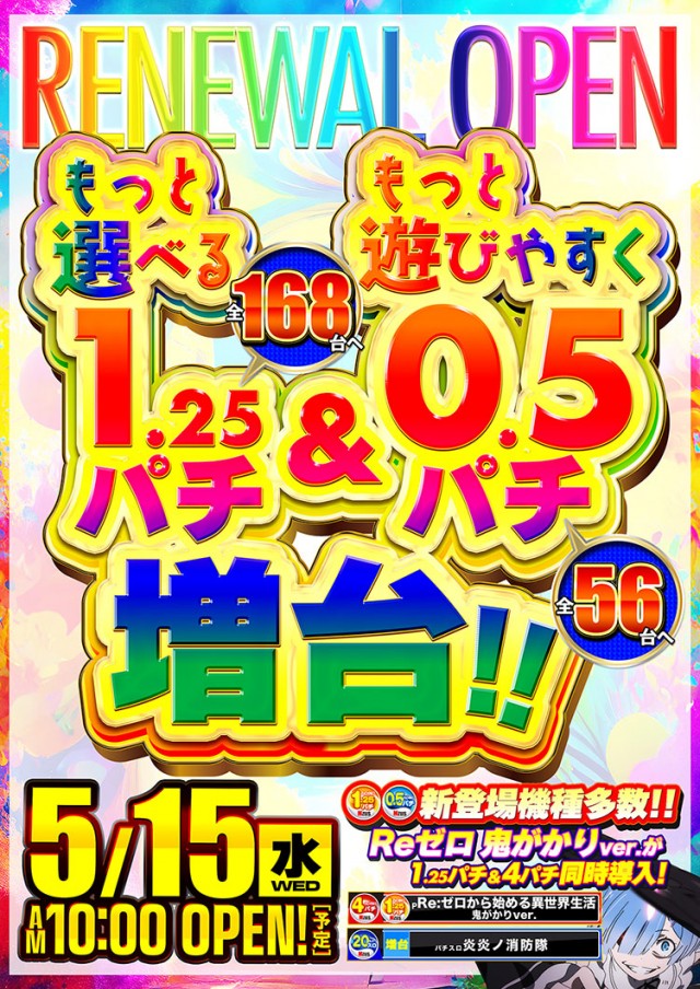 😁リニューアルオープン〜1.25&0.5パチ 増台〜👉❗👉❗