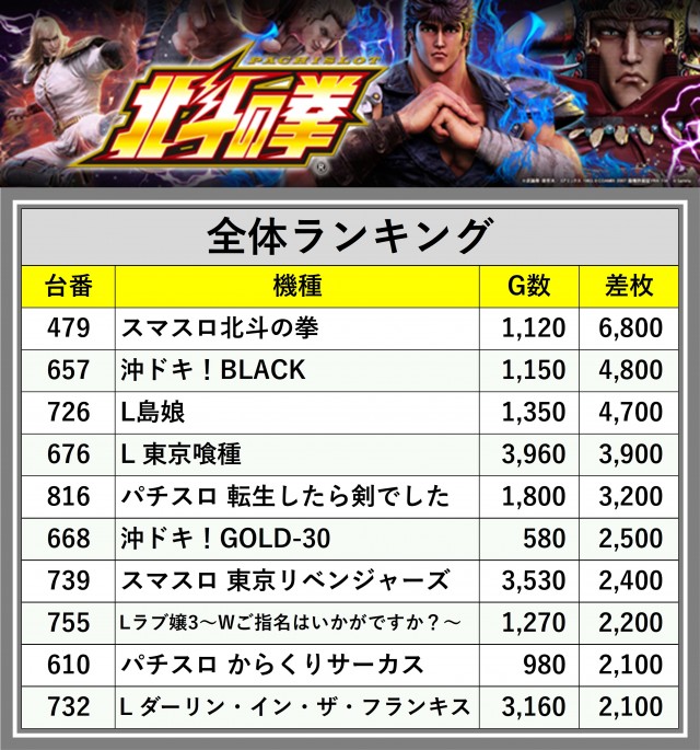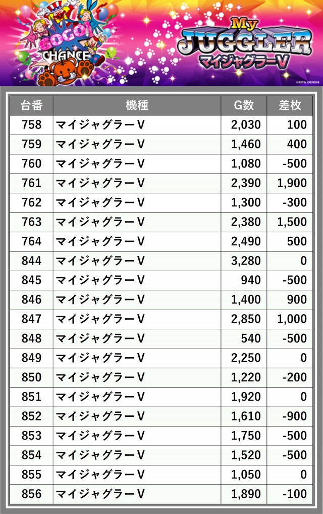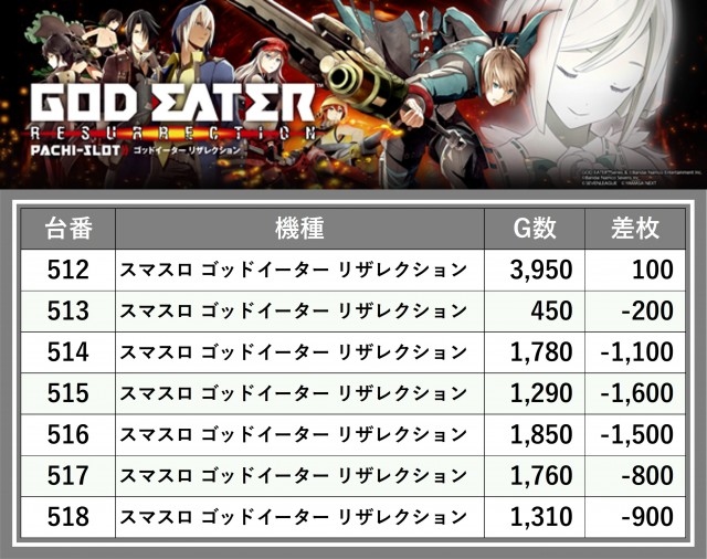 厳選された取材対象機種をはじめ、その他スロット全体から好記録が飛び出した!プレイヤーが楽しんだ1日を下記データにて振り返ってみて欲しい。
