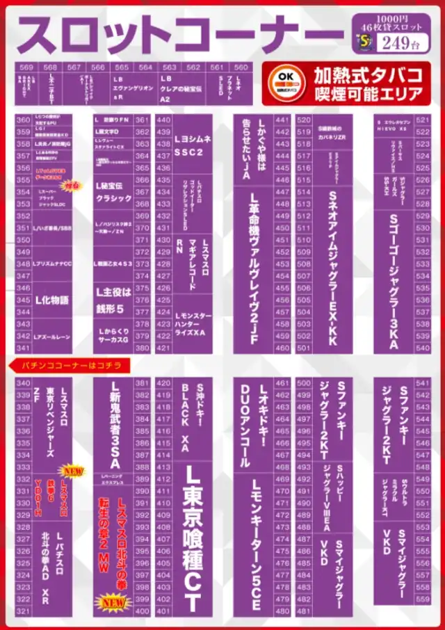 マルハン清河寺店の機種情報