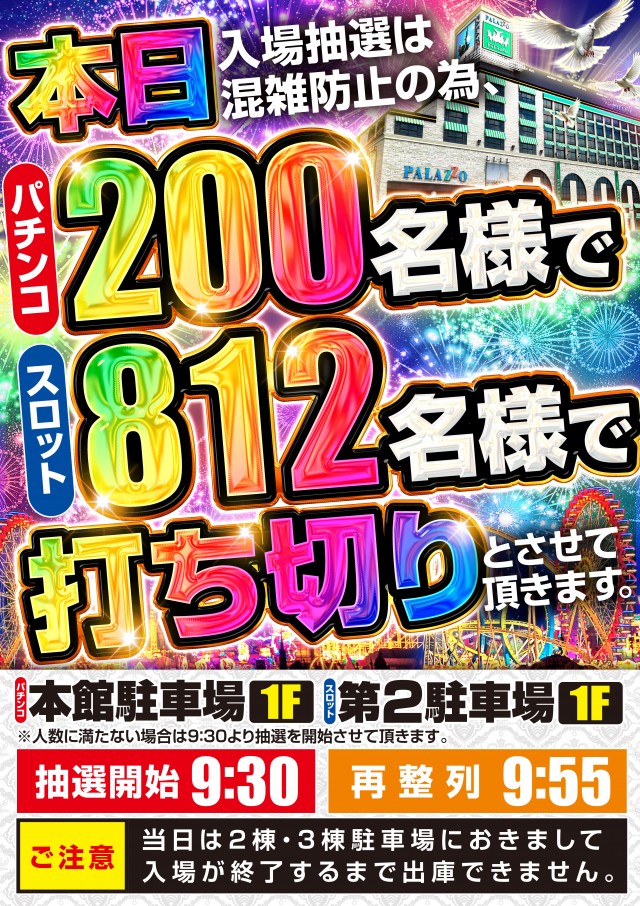 ※開店時間の30分前に抽選参加を締め切らせて頂きます。※入場時に列にいらっしゃらないお客様は最後尾でのご入場となります。 |