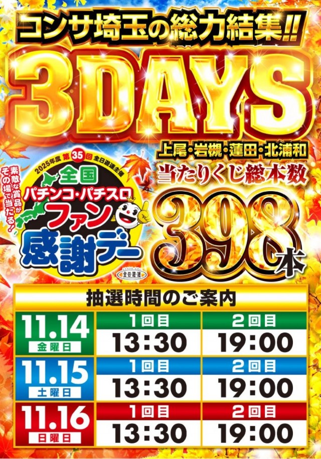 入場抽選希望の方は西側入口(側道側)に9時40分までにお並び下さい。 |