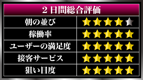午後のパチスロをみると、「バジリスク~甲賀忍法帖~絆」や「SLOT魔法少女まどか☆マギカ2」に機種の性能を最大限まで引き出しているといったプレイヤーが多数。華やかな光景からは、満足度の高さが伝わってきた。