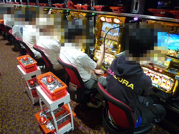 朝イチのパチスロでは、「バジリスク~甲賀忍法帖~絆」や「SLOT魔法少女まどか☆マギカ2」など、多くの機種が満席といった状況。
