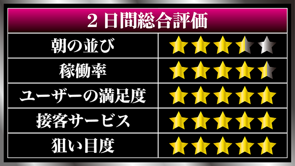 4円パチンコでは、「CR牙狼 魔戒ノ花」や「CRスーパー海物語IN沖縄4」に機種の性能を最大限まで引き出しているといったプレイヤーがおり、満足度の高さも伝わってきた。