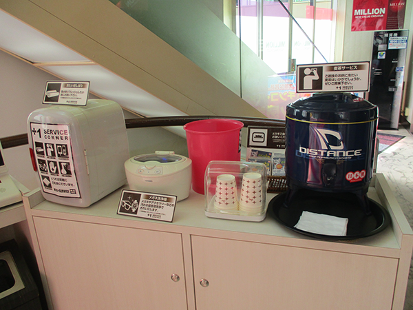各台に設置されたUSBや無料で飲める冷たい麦茶、消臭スプレーといったサービスもバッチリ。より快適に遊技を楽しんでもらいたいといった思いも伝わってきた。