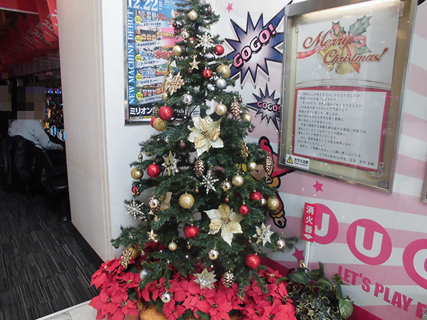 ホールの入り口には大きなクリスマスツリーが置かれており、より明るい雰囲気を演出。