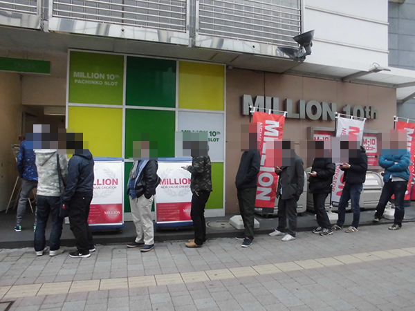 朝イチには、多くのプレイヤーが開店を心待ちにしているような様子でホール前に列を作っていた。
