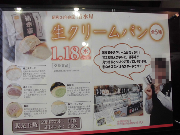 また、賞品コーナーには、数量限定で生クリームパンが置かれていた。全部で5種類の味が取り揃えられているため、自分の好みにあわせて手に取れば、より満足感を得られることだろう。