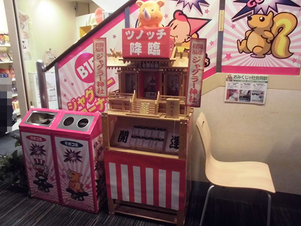 地下1階にジャグラー神社があったことも印象的。運気をうらなうクジが引けるため、遊技以外にも楽しさが得られそうだ。
