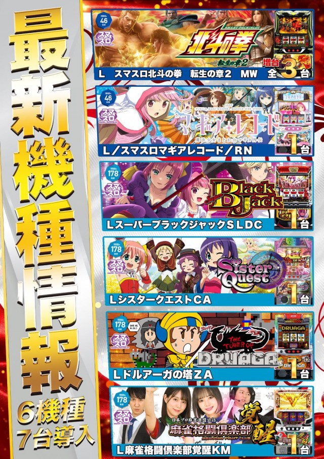 1月21日(水)新台入替初日!~6機種7台導入~✨