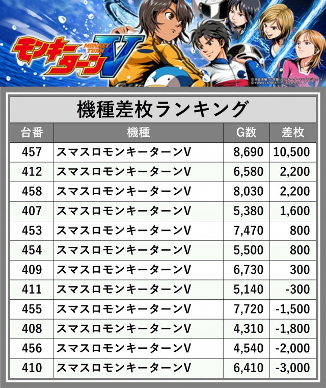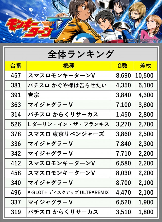 ※差枚数順に掲載しています