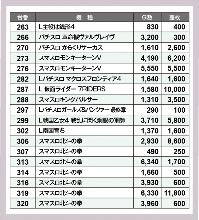優秀台ピックアップ