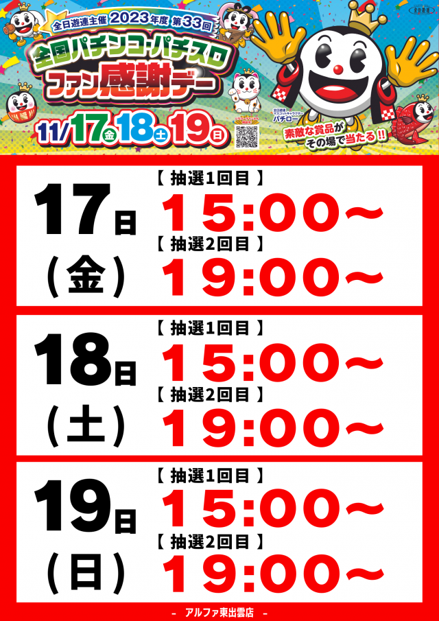 明日最終日!!《全国パチンコパチスロファン感謝デー》開催!!