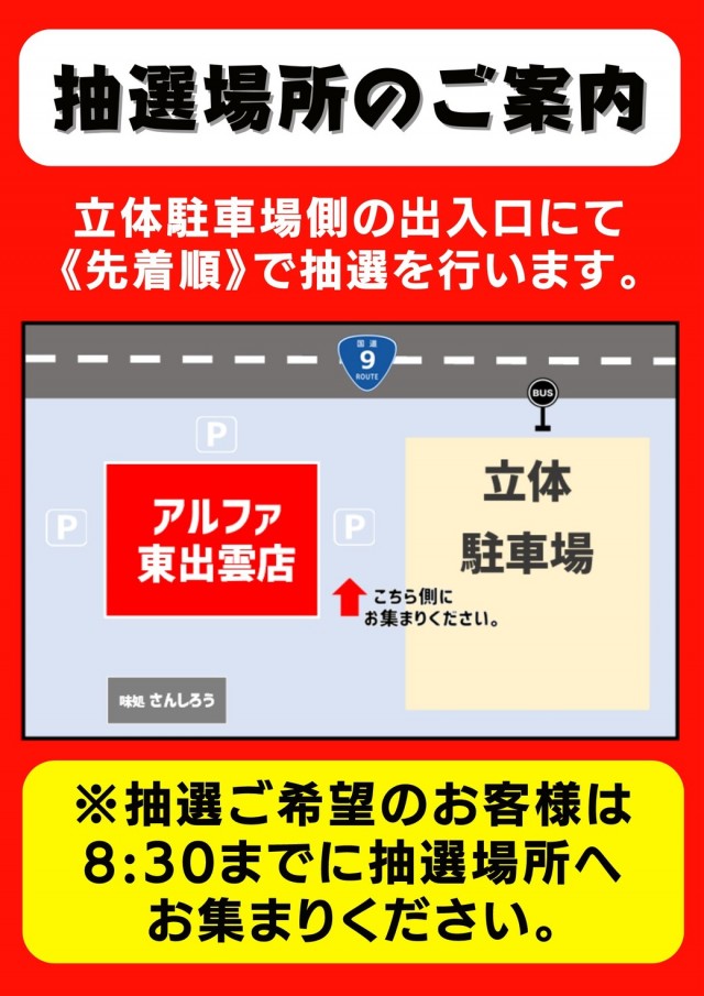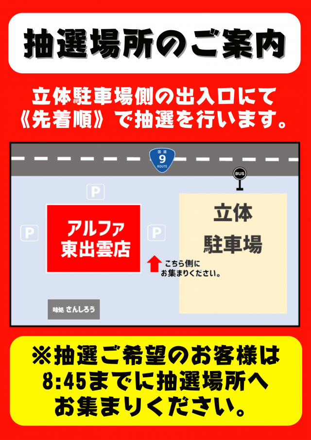 立体駐車場側出入口で到着順に抽選 |